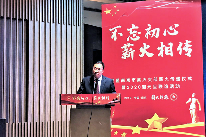 查看详情在民盟南京市委副主委戴云的传递下,薪火支部第一届主委汤在虎将象征着“薪火相传”的旗帜交给了第二届支部主委李祥。他带领着2019年入盟的100多名新盟员们集体宣誓。这富有意义的时刻,令每一名到场的盟员激
