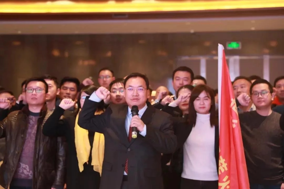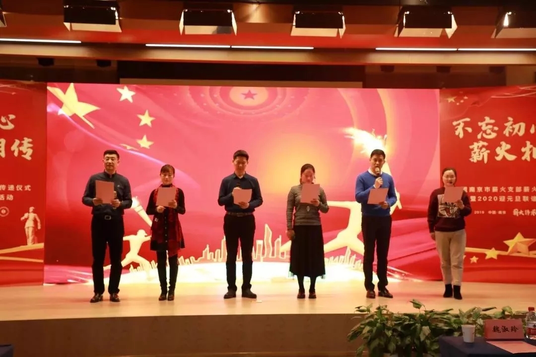 在民盟南京市委副主委戴云的传递下,薪火支部第一届主委汤在虎将象征着“薪火相传”的旗帜交给了第二届支部主委李祥。他带领着2019年入盟的100多名新盟员们集体宣誓。这富有意义的时刻,令每一名到场的盟员激动振奋、意气昂扬。