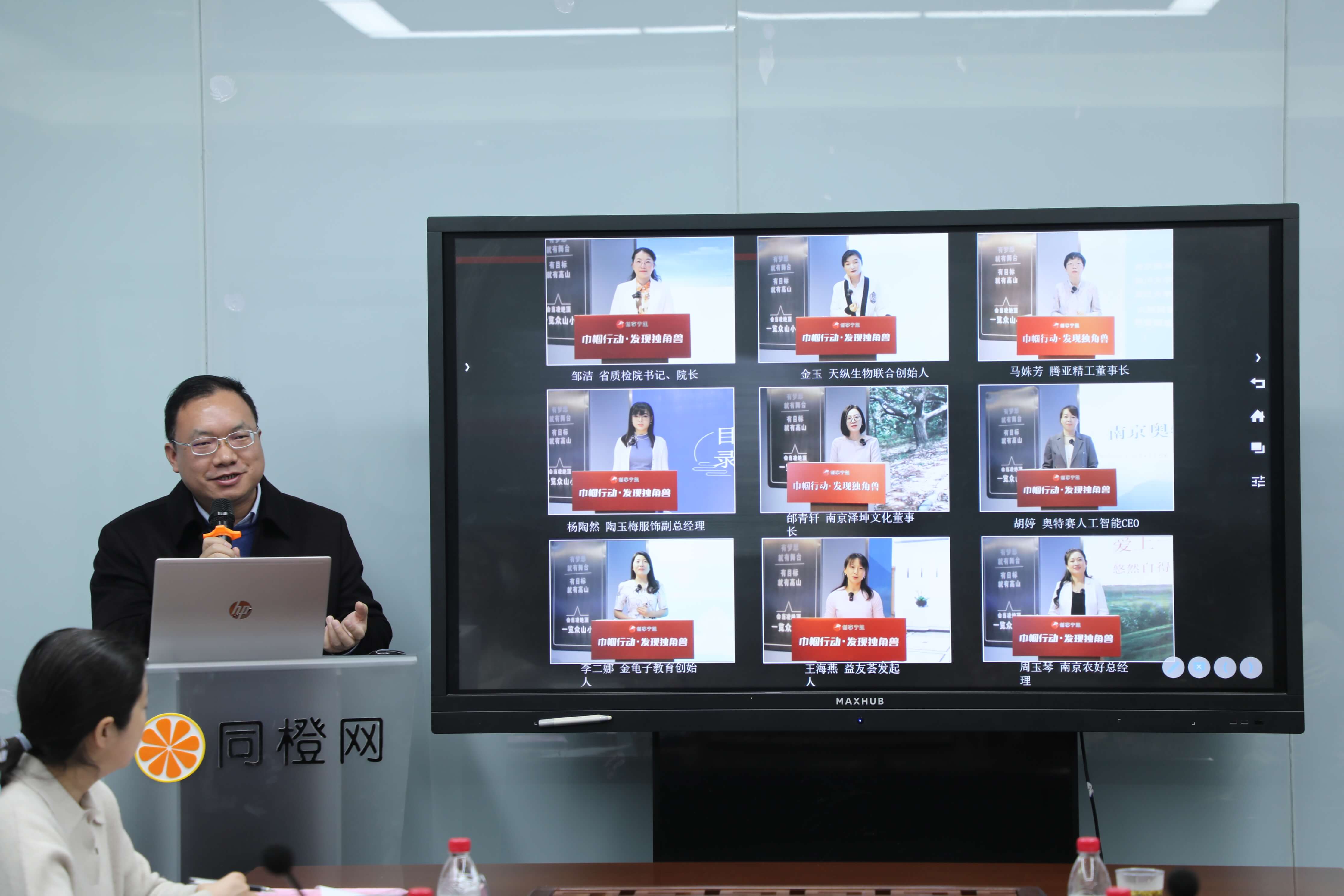 同橙科技董事长李祥对夏旸副主席一行的到来表示热烈欢迎并详细介绍了近期发展情况。他表示,同橙科技获颁“江苏省女大学生就业创业实践基地”对公司来说既是荣誉,更是责任。同橙科技将针对女大学生就业创业提供创业孵化、实习实践等服务,在巾帼科创、人才汇聚等多方面建立服务机制,营造最佳创新创业生态环境,助力巾帼就业创业。专题调研会上,各方就在科技创新领域共建“创享宁姐云平台”、“巾帼科创行动”等方面进行了深度交流。