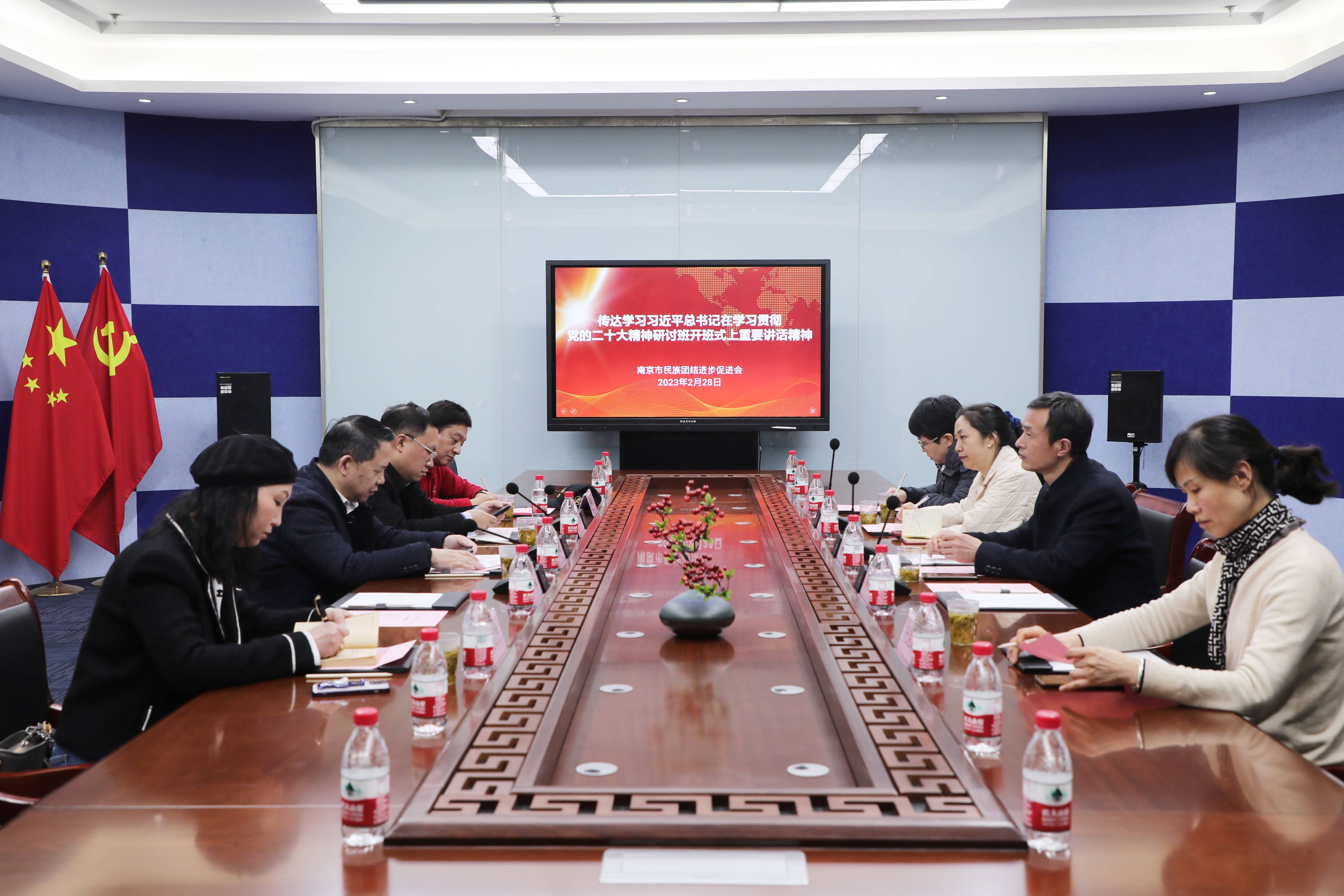 2月28日下午,南京市民族团结进步促进会召开会长办公会议,专题学习习近平总书记在学习贯彻党的二十大精神研讨班开班式上的重要讲话精神,按照中央部署和省委要求,结合民促会工作实际,研究部署贯彻落实举措。会议由会长龙明智主持,副会长、秘书长、副秘书长参加,民促会驻会副会长、同橙科技董事长李祥,副会长兼秘书长马有明分别进行了交流发言。
