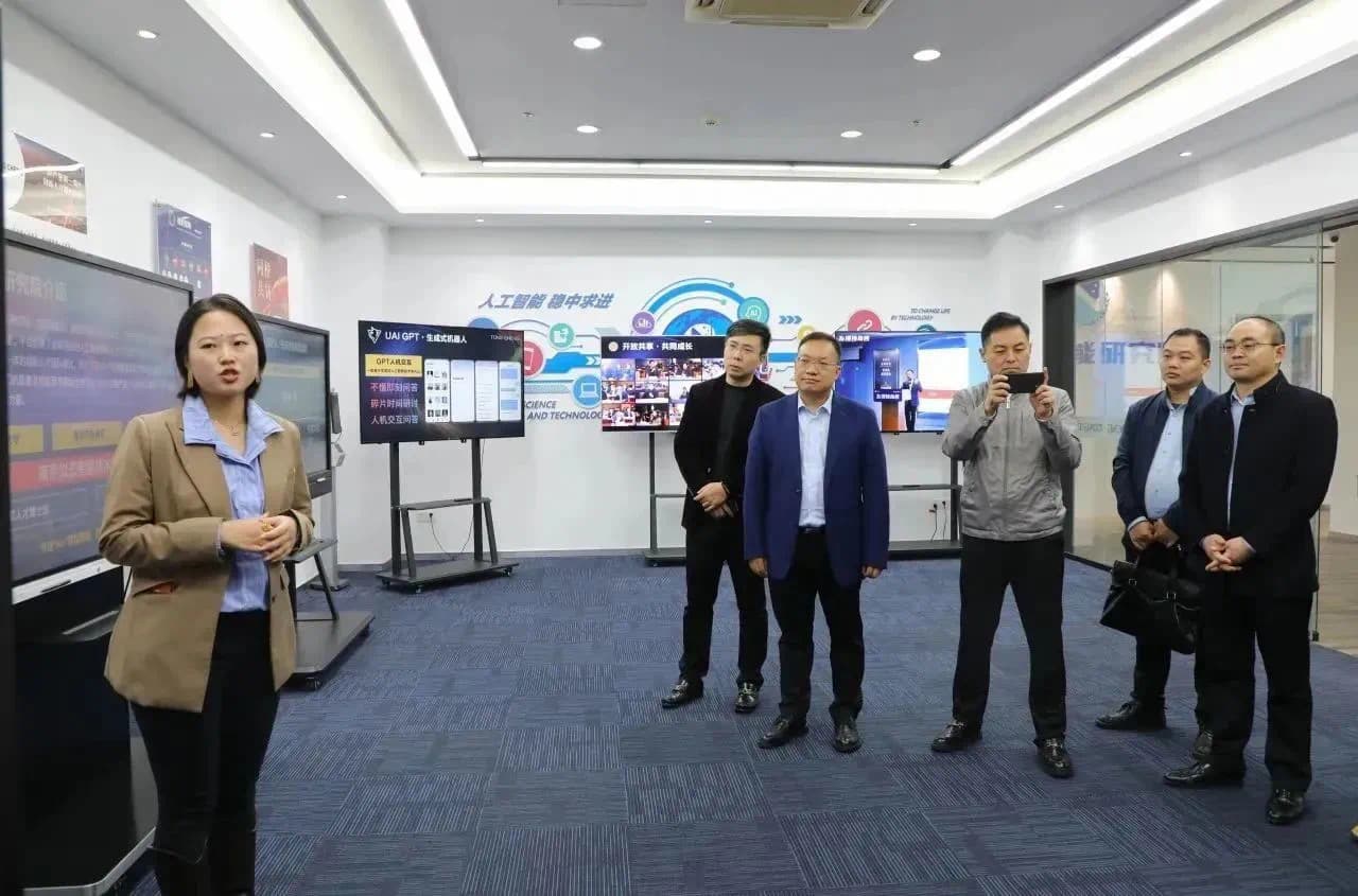 徐浩然会长一行先在同橙科创集团的数字化展厅进行参观,集团副总裁孙梦对同橙科创集团的业务领域、科创能力以及Unicorns AI(发现独角兽人工智能)系统做介绍。同橙科创集团作为领先的创新生态集成服务商,致力于打造开放共享的科创服务生态体系。徐浩然会长一行对“发现独角兽”生成式人工智能平台的大数据优势和品牌力量表示认可并进行了探讨交流。