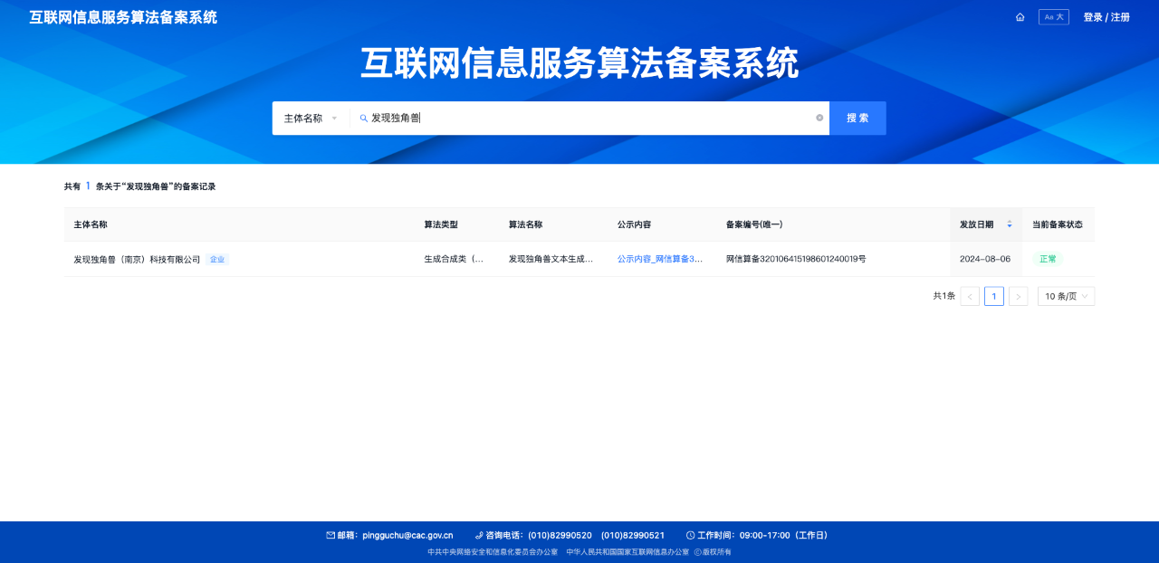 打开微信扫一扫2024年8月5日,国家互联网信息办公室发布了第七批深度合成服务算法备案信息的公告,同橙科创集团自主研发的“发现独角兽文本生成算法”成功通过备案!
