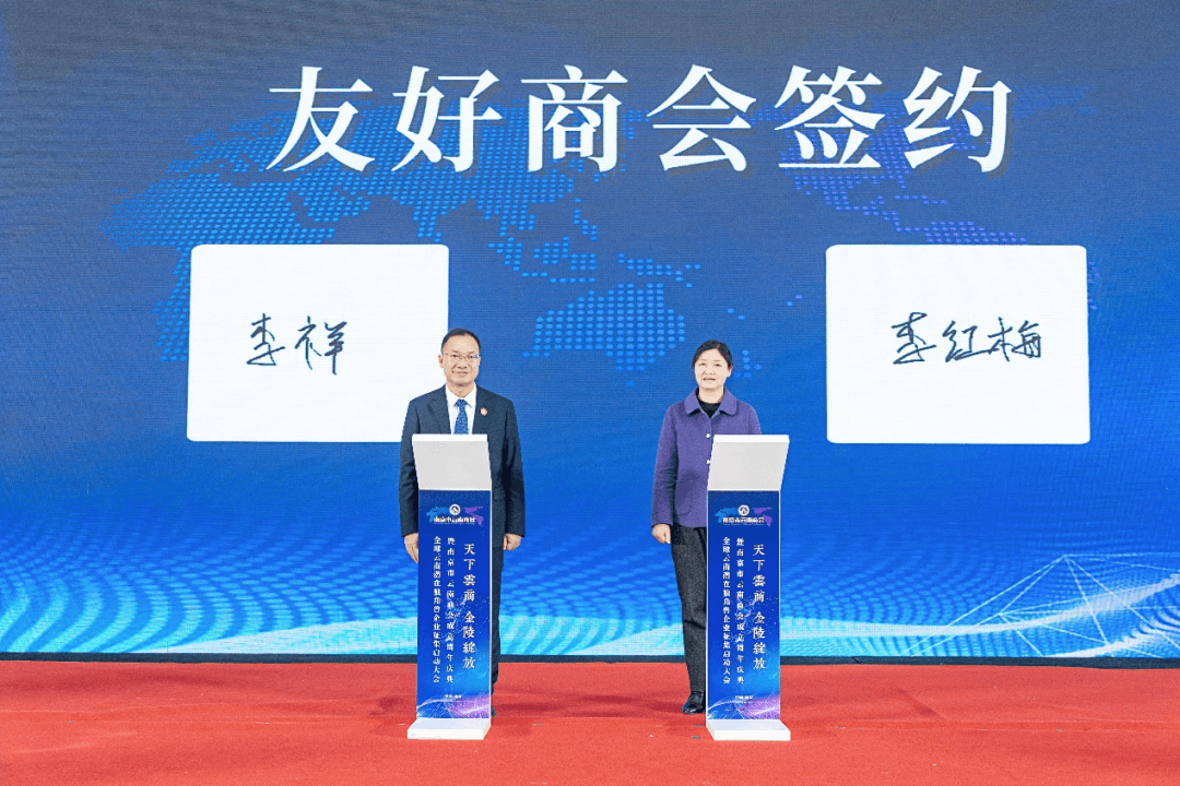 友好商会签约环节,云南省楚雄州总商会与南京市云南商会缔结友好商会,将促进资源共享、优势互补,共同推动区域经济繁荣发展。