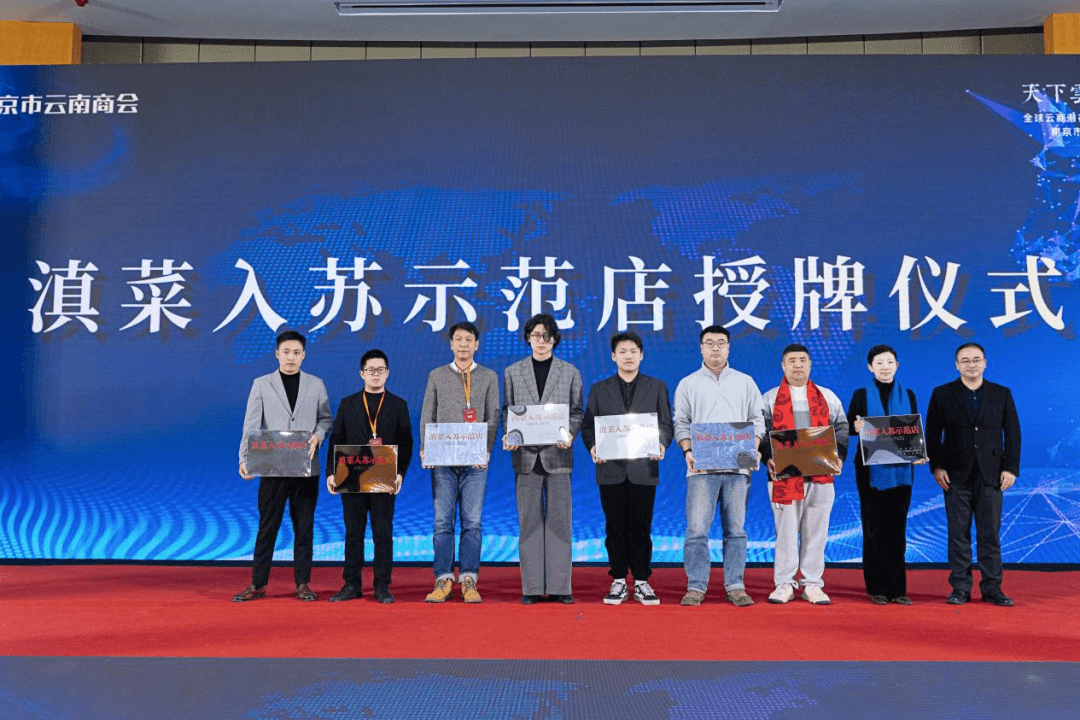 “滇菜入苏”示范店授牌仪式由云南省人民政府驻上海办事处党组成员、副主任饶华俊授牌。“滇菜入苏”项目由云南省人民政府驻上海办事处牵头实施,南京市云南商会推进实施,旨在整合资源、搭建平台,助力示范店做大做强,以示范店的发展推动滇菜的品牌化、产业化和标准化。