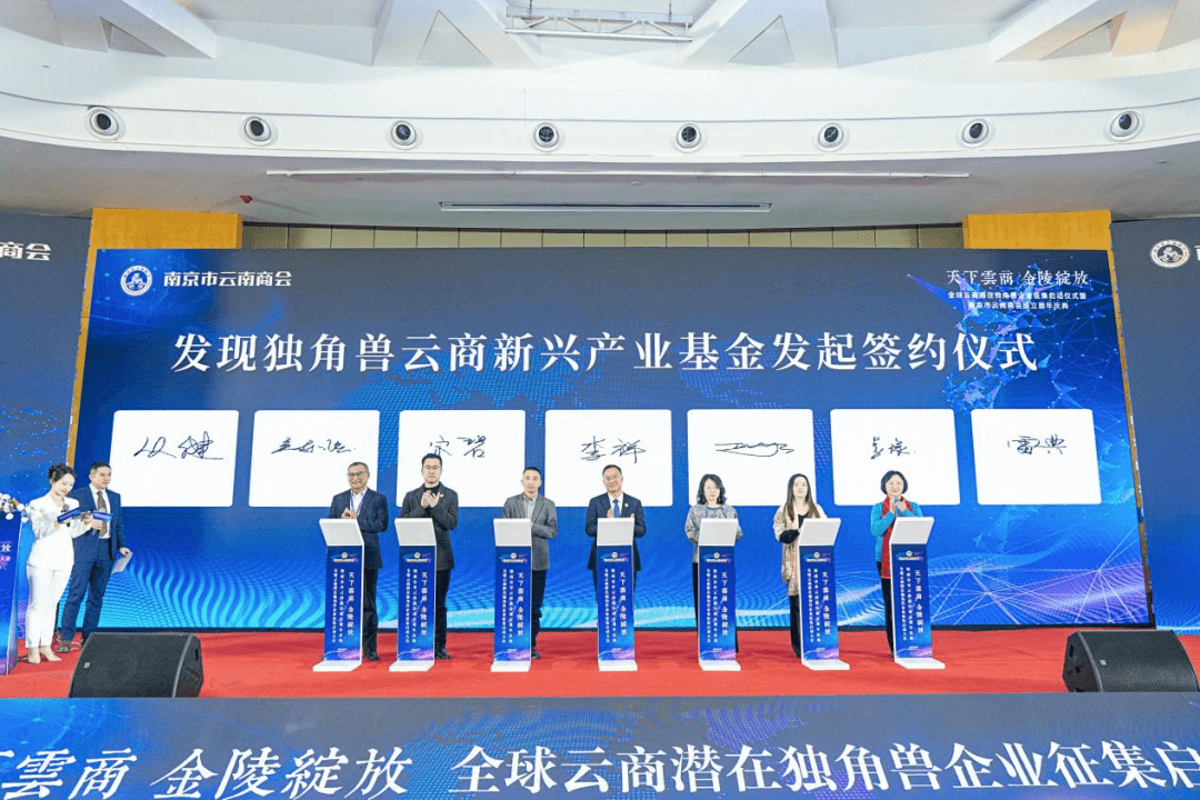 本次大会还进行了发现独角兽云商新兴产业基金发起签约仪式,发现独角兽云商新兴产业基金汇聚了多方资本力量,将进一步赋能云商潜在独角兽企业的发展,助力其人才引进、技术研发和市场拓展。南京市云南商会会长李祥,美国云南总商会会长姚依娜,香港云南商会会长李缘,江苏省黑龙江商会会长单位、江苏南房房产集团有限公司董事长吴东浩,上海子米投资发展有限公司董事长从健,南京市如日方暾创业投资管理有限公司董事长雷典参加基金发起签约。