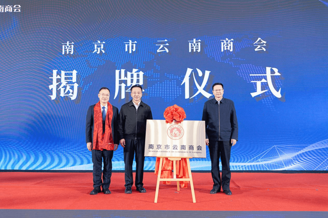 云南省政协副主席、省工商联主席高峰和江苏省工商联主席刘聪共同为南京市云南商会揭牌,南京市云南商会的成立得到了两地党委、政府的关心、指导和支持。南京市云南商会将不忘初心,致力于铸就云商品牌、传承云商精神、弘扬南京柳树湾文化,搭建南京与云南两地交流合作平台。