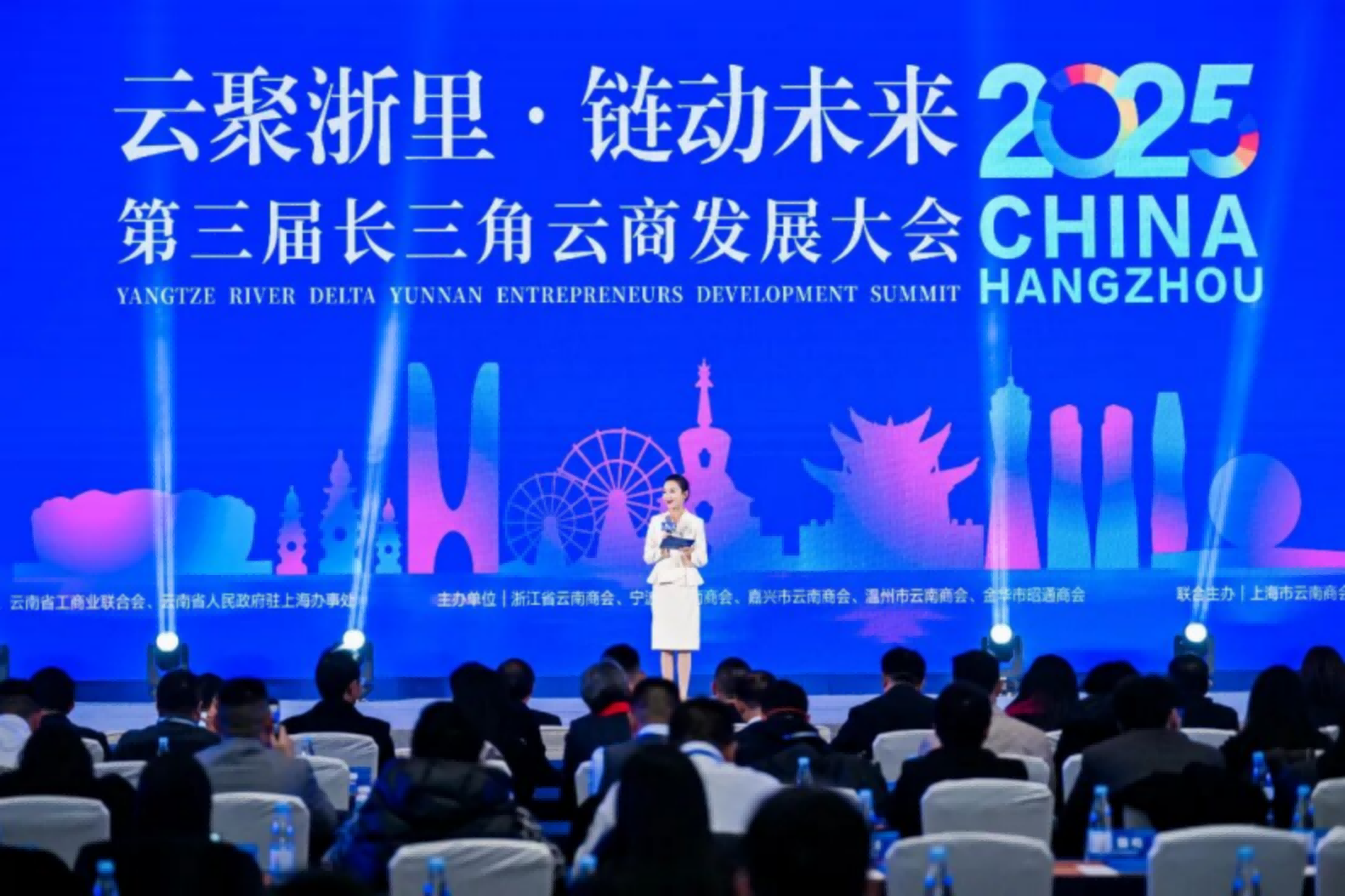浙江省云南商会会长周伟明在开幕致辞中,代表主办方向与会嘉宾致以热烈欢迎,深入阐释大会主题内涵。他指出,浙江数字经济高地优势与云南沿边开放区位优势互补性极强,合作前景广阔,呼吁以此次大会为新起点,深化“浙江创新研发+云南开放应用”协作模式,携手谱写两地高质量发展新篇章。
